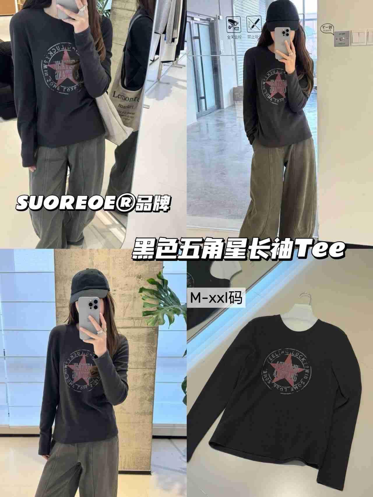 📣 SUOREOE®🇭🇰黑色五角星⭐️长袖Tee❗️带防伪卡发货🔥可扫码