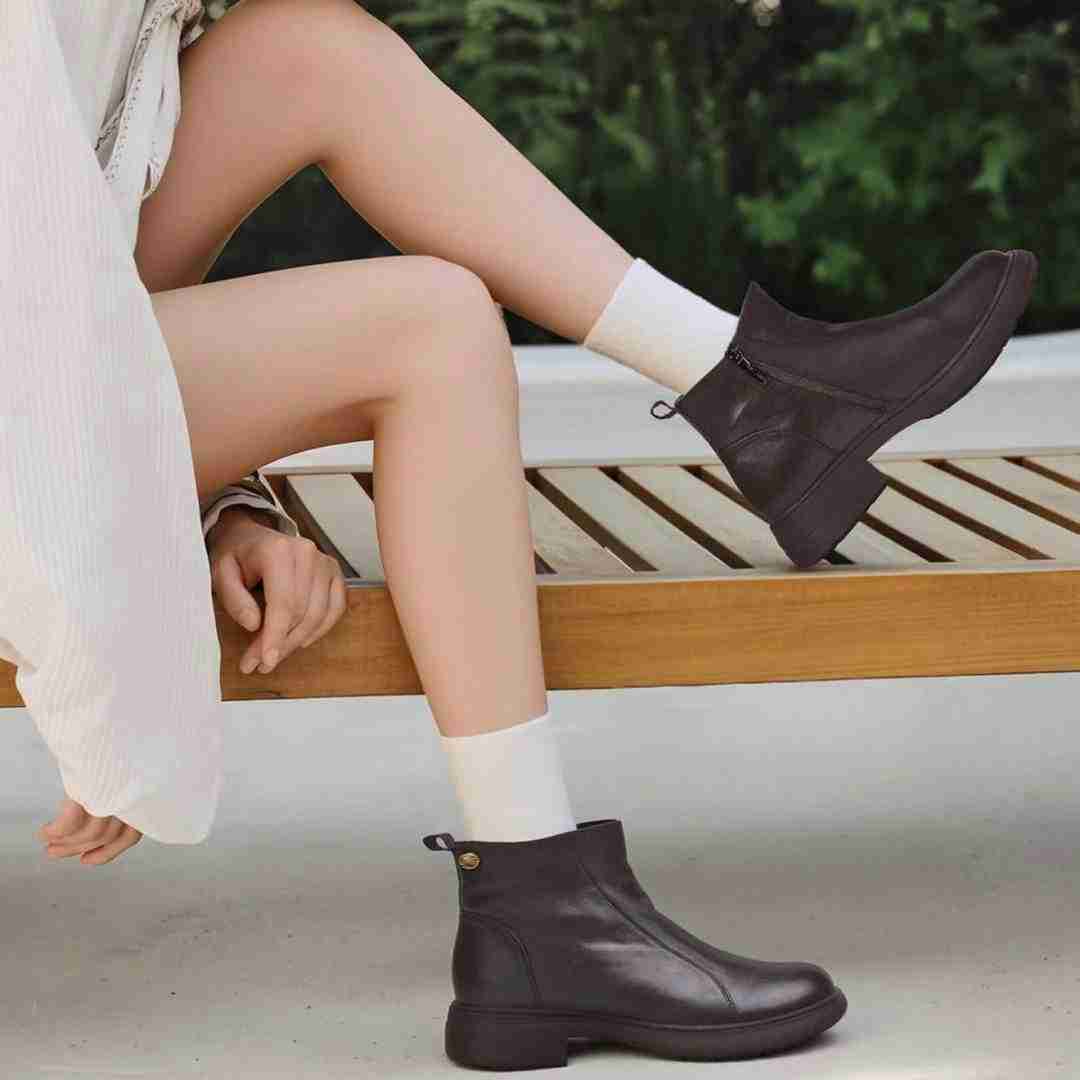 【品牌撤柜】真牛皮侧拉链短靴清仓显瘦度100%,好穿度120%大厂手抓工艺💥质感真的绝绝子👍
