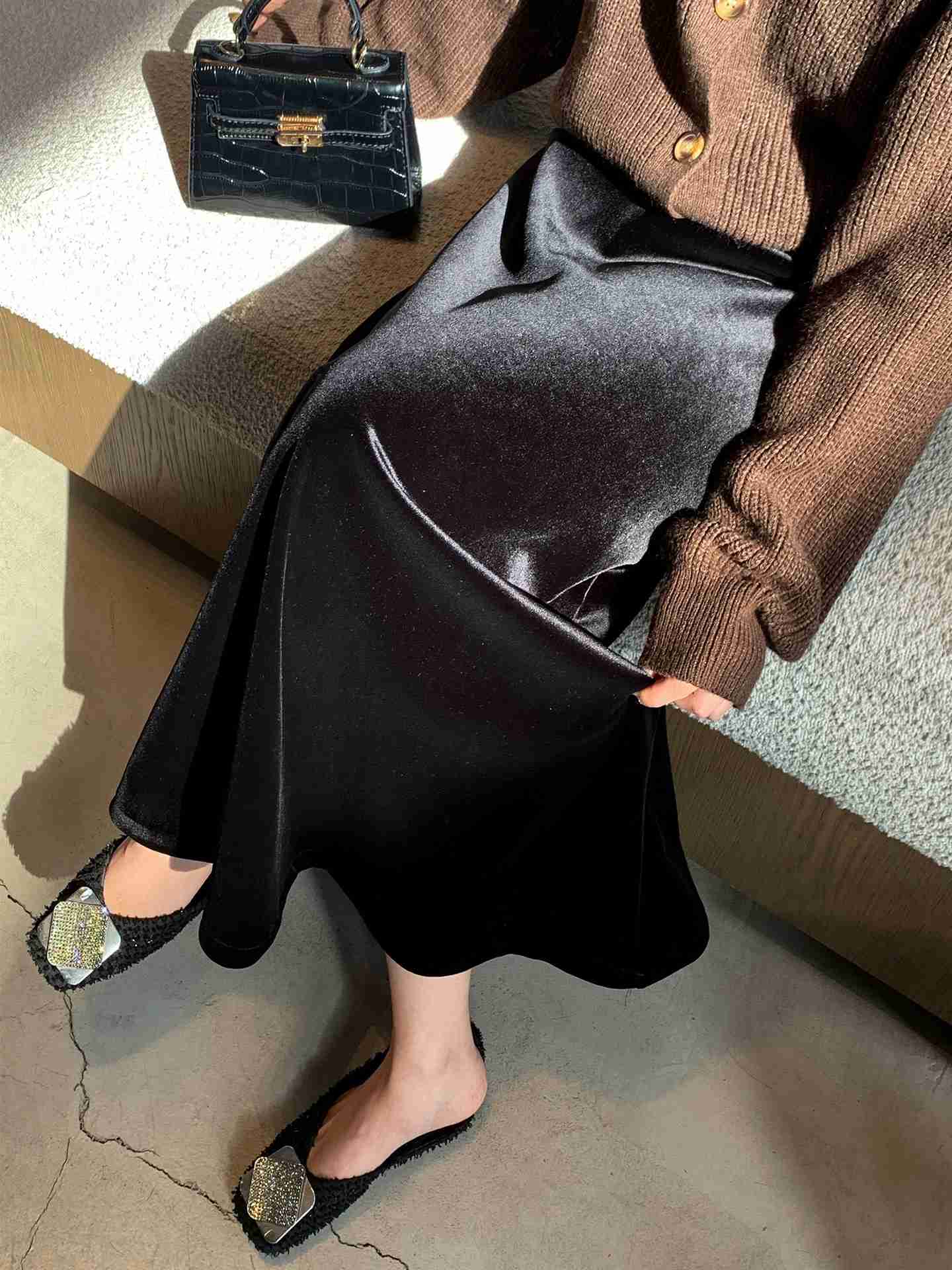 ⏰2.9-2.24停发 👸🏻年会百搭贵妇感小黑裙【净奢风丝绒A字半裙】绸缎般光泽感绝美⚠️垂感超绝,久坐也不易泛白❗️